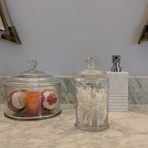 Pottery Barn Bathroom Glass Canisters : Bathroom Glass Storage Jars Vtwctr : Matters of consumer privacy and rights are paramount to our brands and we will continue to work diligently to make our products available to you.. Shop pottery barn's bathroom hardware and add a decorative element to your bathroom. This new vanity has been unboxed with damage to the corner of. Never miss new arrivals that match exactly what you're looking for! You'll receive email and feed alerts when new items arrive. Great ideas for decorating or remodeling your bathroom and diagrams are helpful tips to see what setup is best for you.